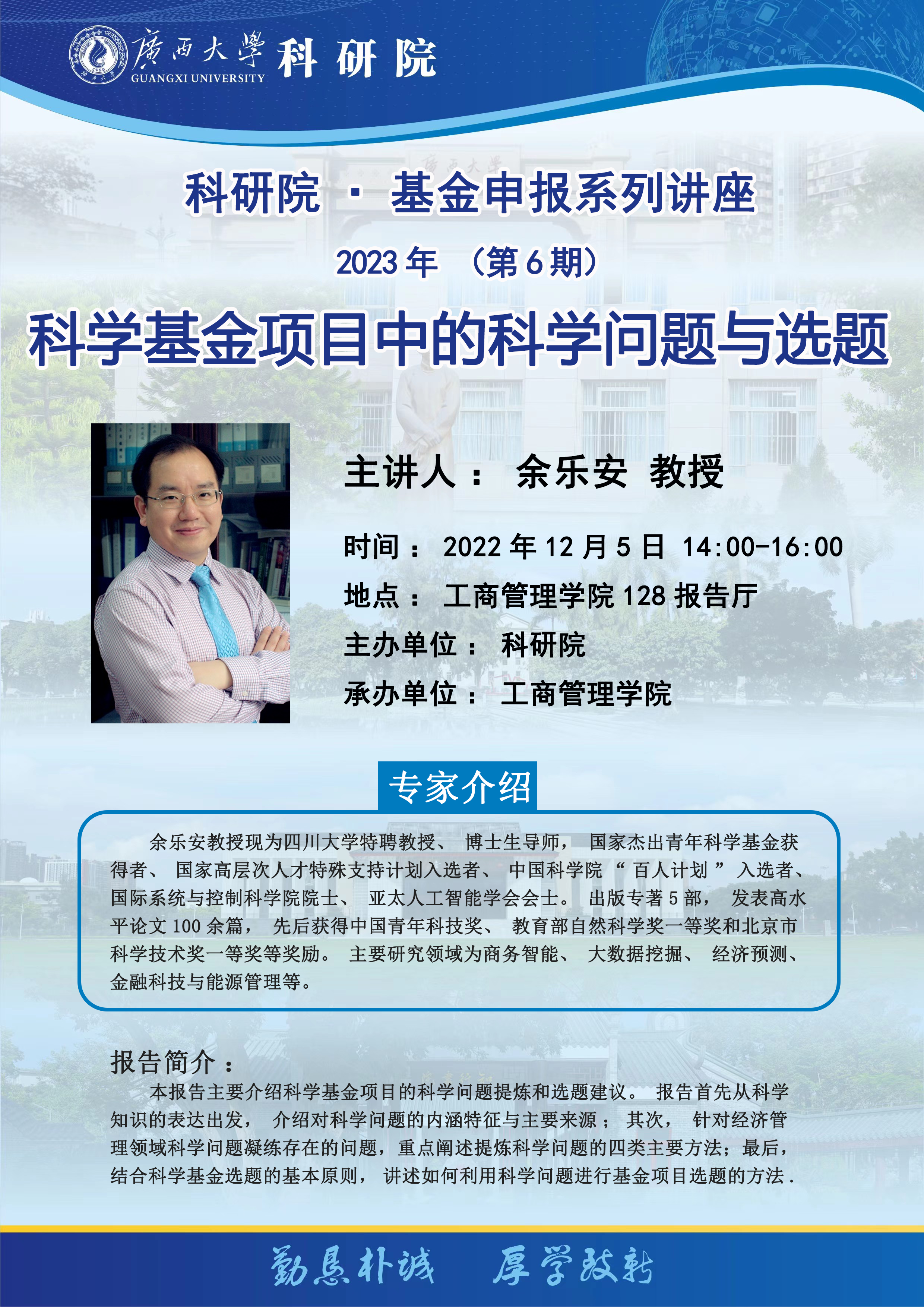 科研院·基金申报系列讲座2023年(第6期)科学基金项目中的科学问题与选题
