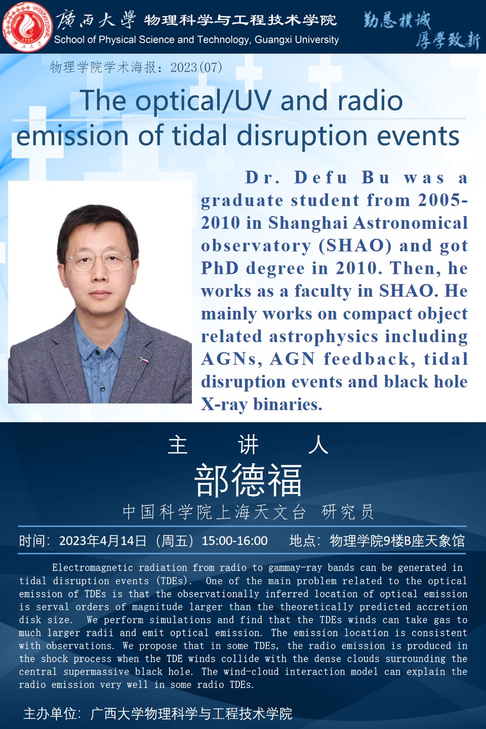 物理学院2023年学术报告系列之07:The optical/UV and radio emission of tidal disruption events