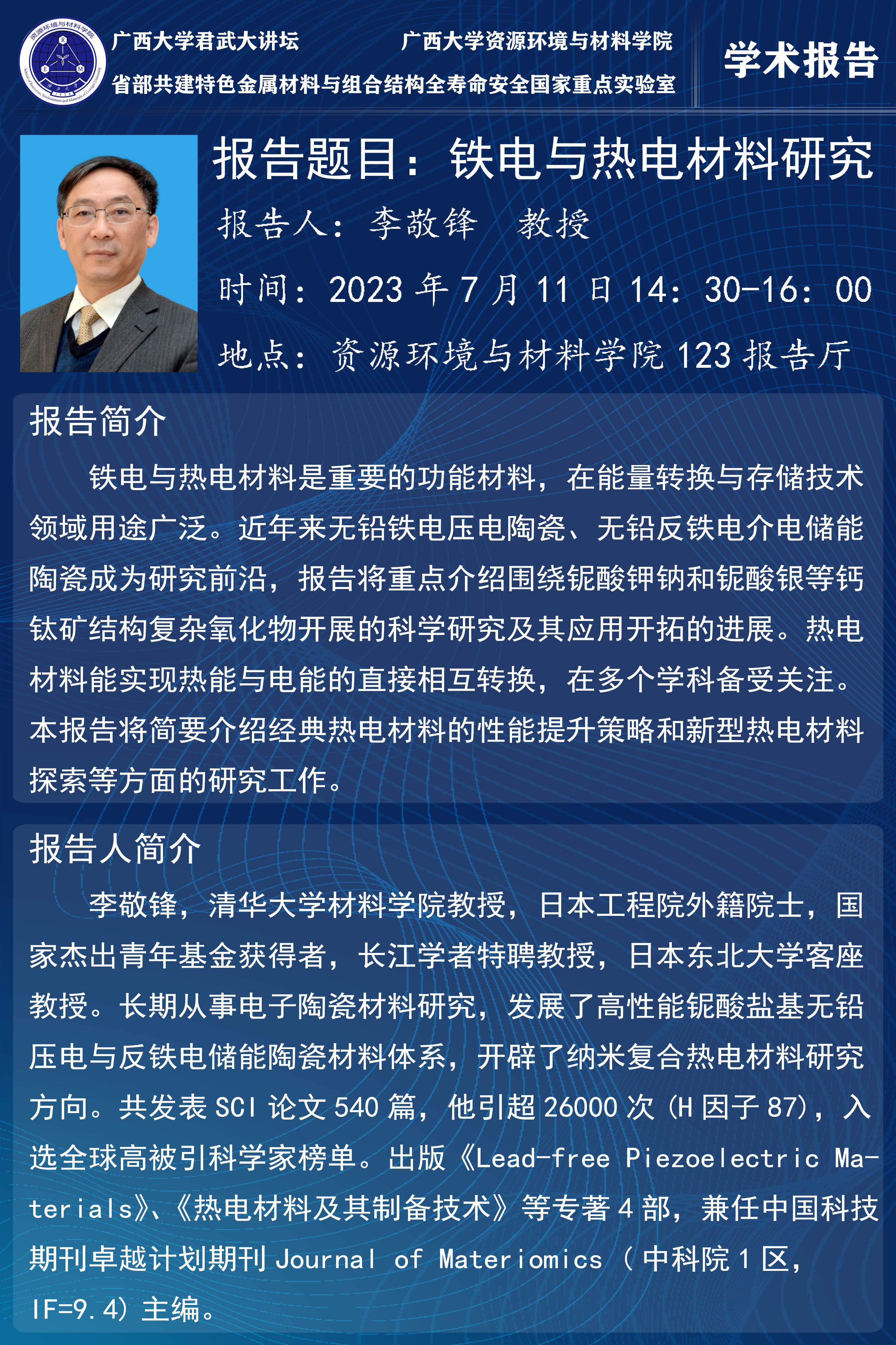 米兰电竞 ,传承竞技之魂,开启电竞新篇君武大讲坛:铁电与热电材料研究