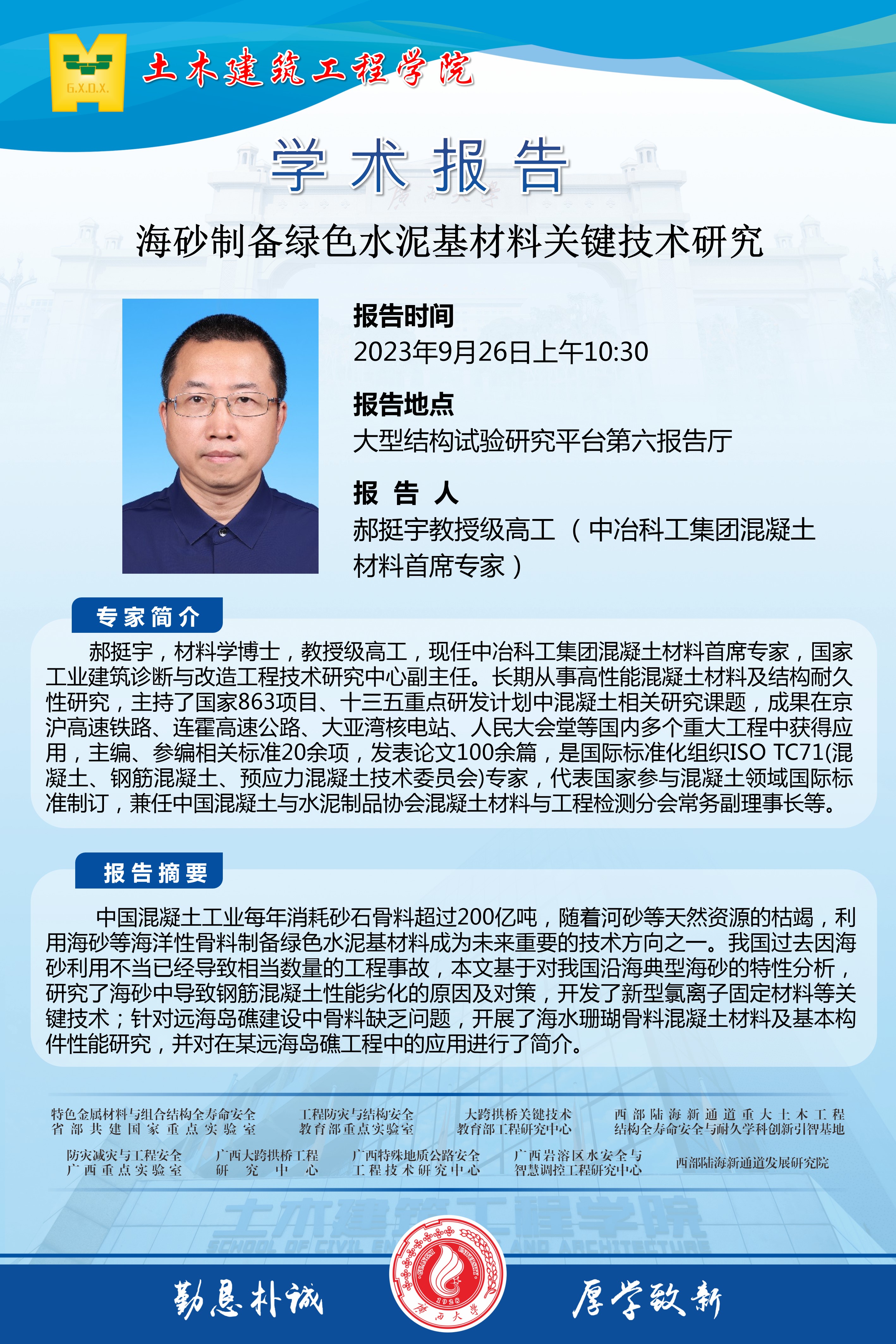 土木学院学术报告:海砂制备绿色水泥基材料关键技术研究