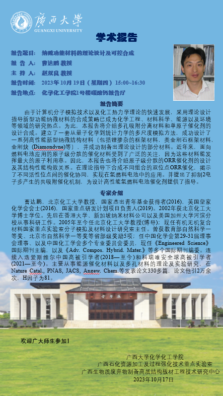 化学化工学院学术报告:纳微功能材料的理论设计及可控合成