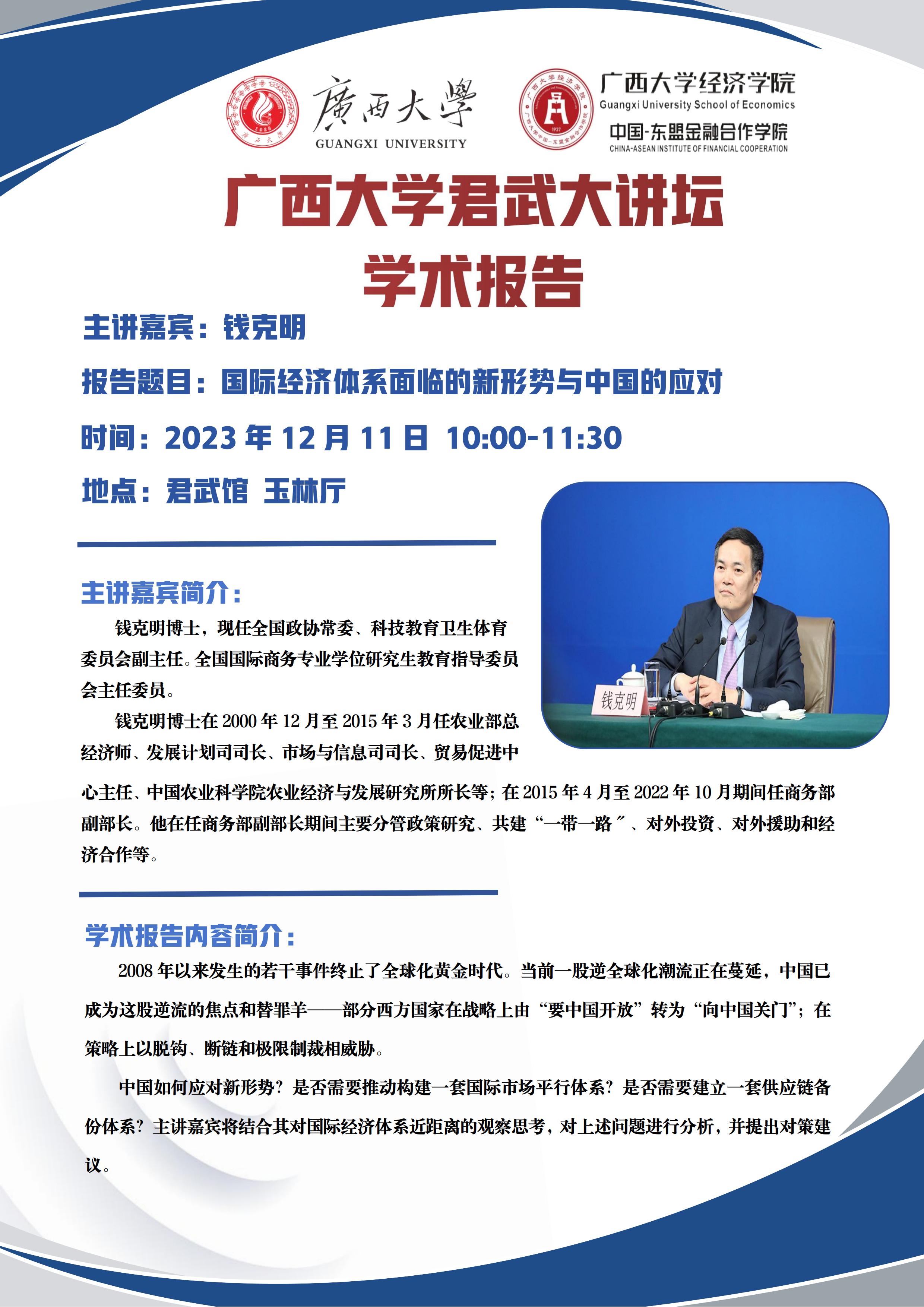 君武大讲坛学术报告:国际经济体系面临的新形势与中国的应对
