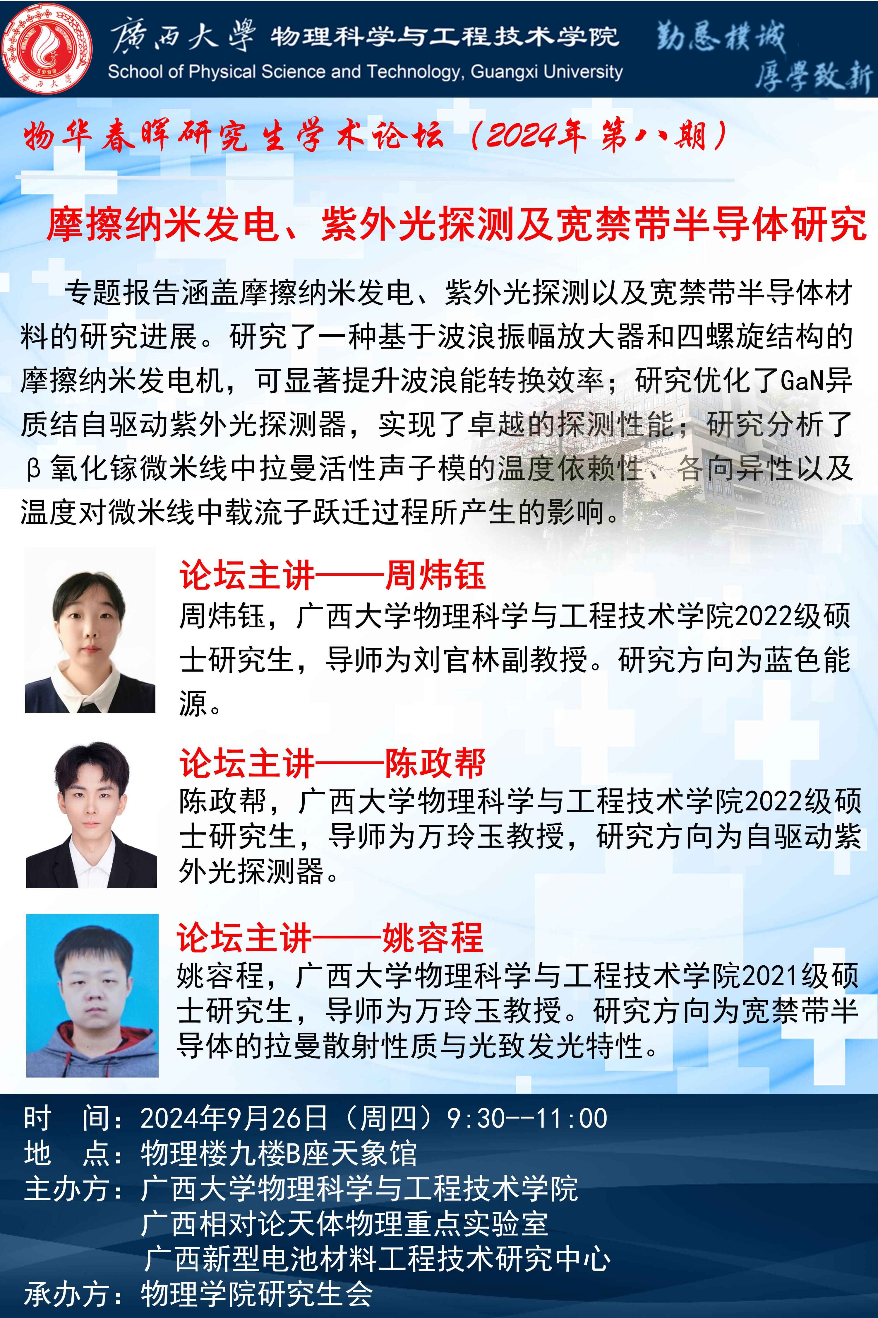 纳米摩擦发电机 、紫外光探测及宽禁带半导体研究
