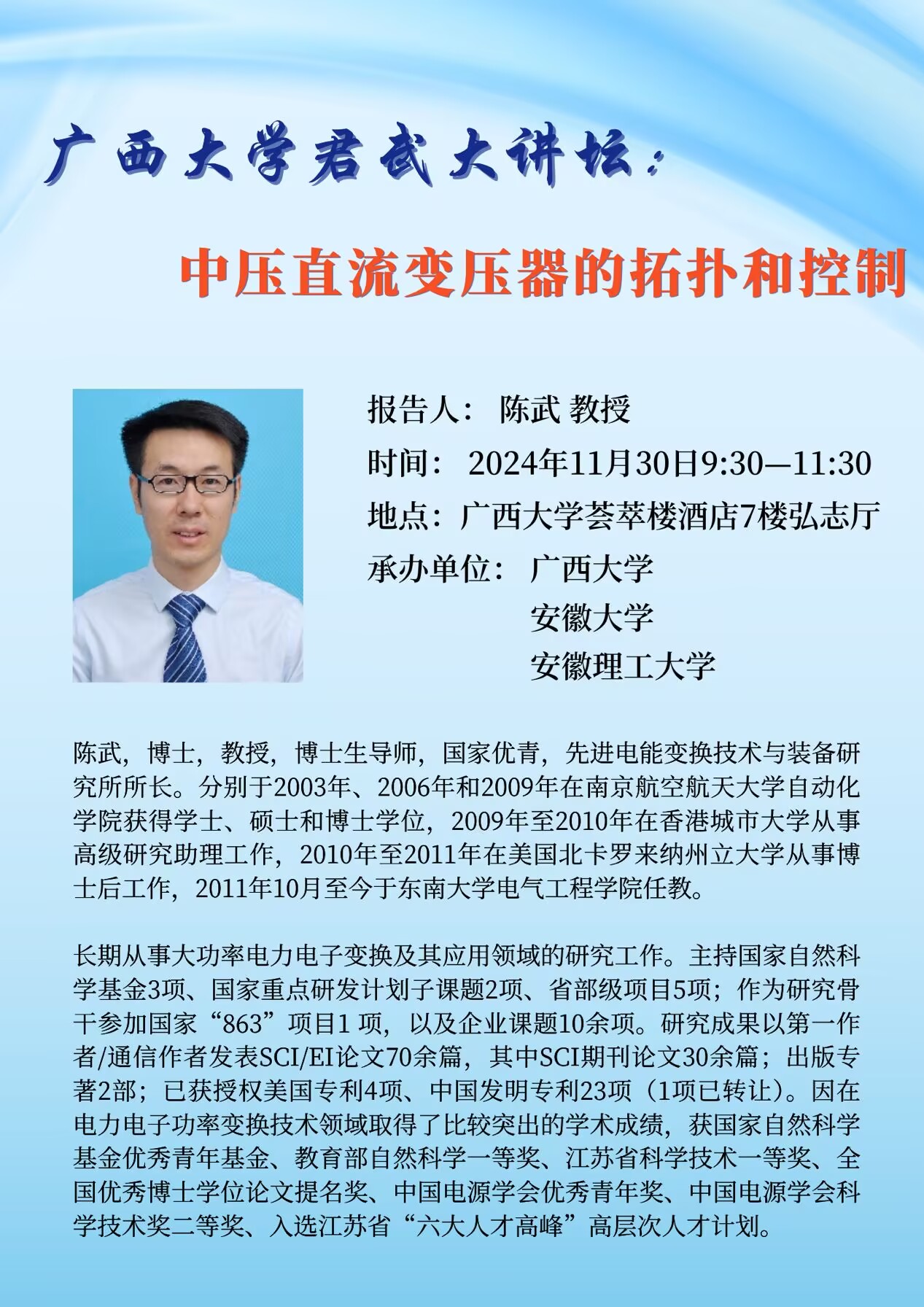 君武大讲坛:中压直流变压器的拓扑和控制