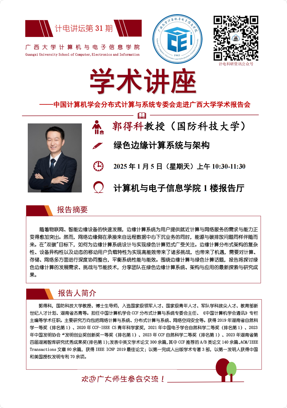 “计电讲坛”系列活动第31期——中国计算机学会分布式计算与系统专委会走进米兰电竞 ,传承竞技之魂,开启电竞新篇学术报告会:绿色边缘计算系统与架构