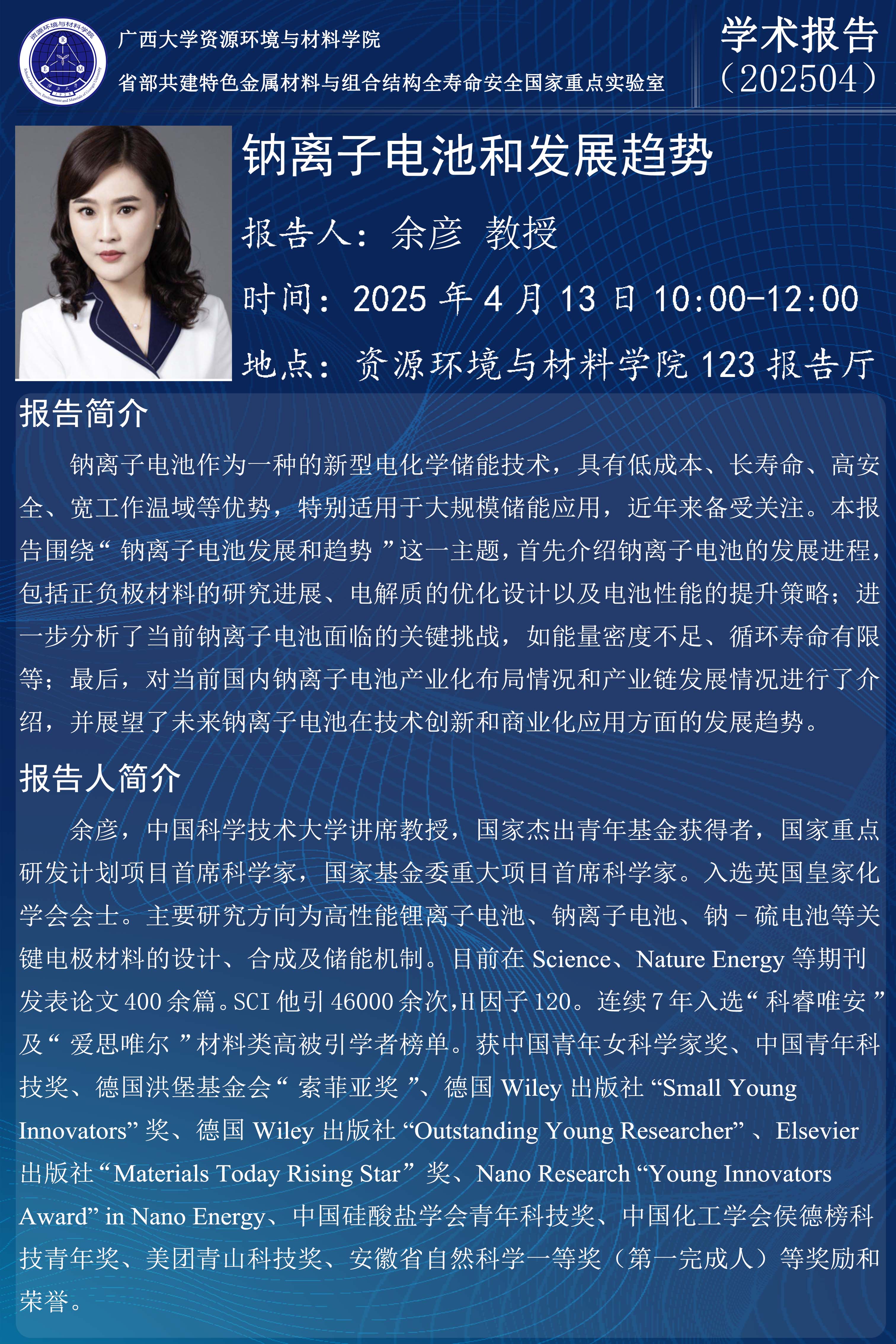 资源环境与材料学院学术报告:钠离子电池和发展趋势