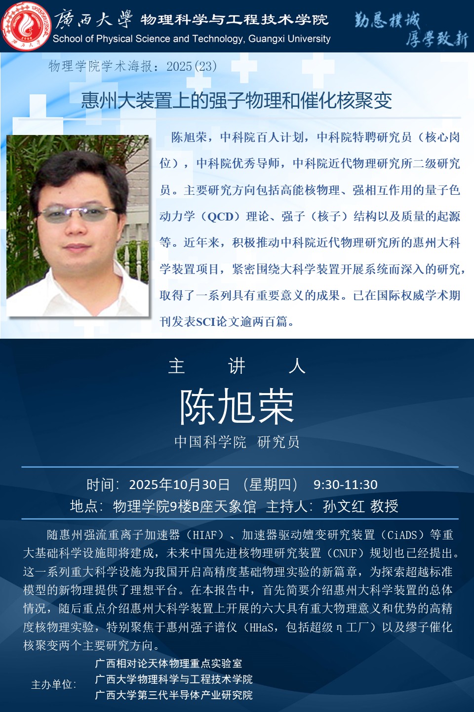 物理科学与工程技术学院学术报告:惠州大装置上的强子物理和催化核聚变