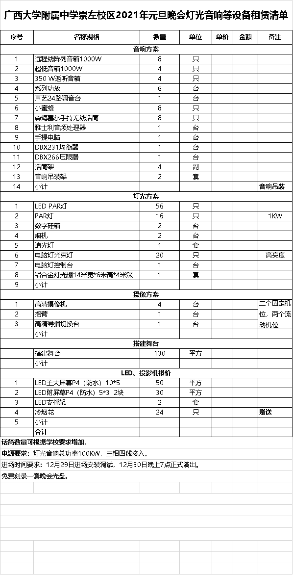 米兰电竞 ,传承竞技之魂,开启电竞新篇附属中学(南宁校区)2021年元旦晚会灯光音响等设备租赁清单 |