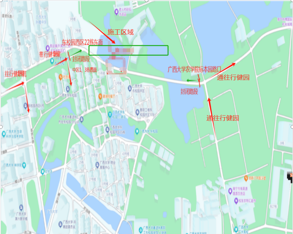 关于钓月台西侧道路维修改造项目临时施工封闭通往行健园道路的通知